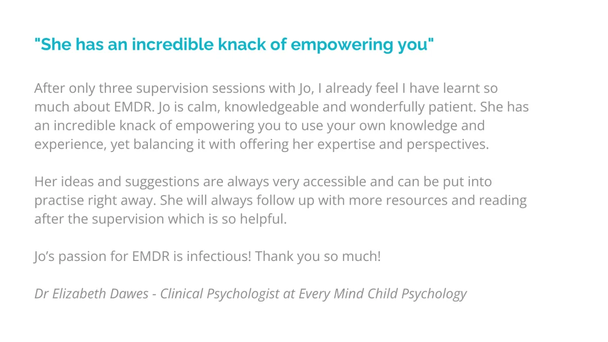 Joanna offers specialist EMDR supervision within small and supportive monthly groups for UK based therapists working in private practice with either child and/or adult clients. This includes a monthly 1.5 hour session on Zoom in groups of up to 4 members.